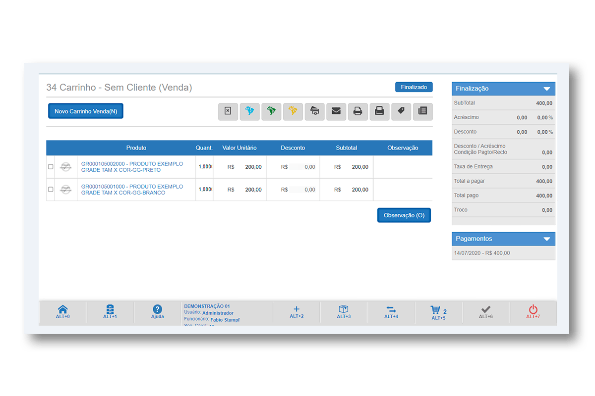 Continuous quotation-to-checkout flow with tax issuance integrated with SEFAZ.